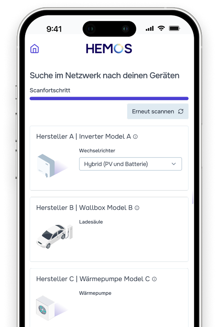 HEMOS ist der Autopilot. Einmal eingerichtet, läuft das System voll automatisch im Hnitergrund. Es prüft Wetterdaten, Strompreise und Verbrauchsmuster und steuert die Geräte intelligent, sodass der Kunde spart, ohne einen Finger zu rühren.