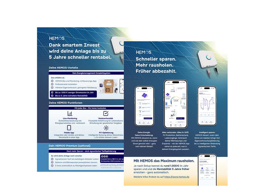 HEMOS ist dein Hebel, um im Wettbewerb gegen Enpal & Co zu bestehen – mit Fokus auf Unabhängigkeit und Rentabilität, anstelle von Hersteller Lock-In & Abo-Pflicht.